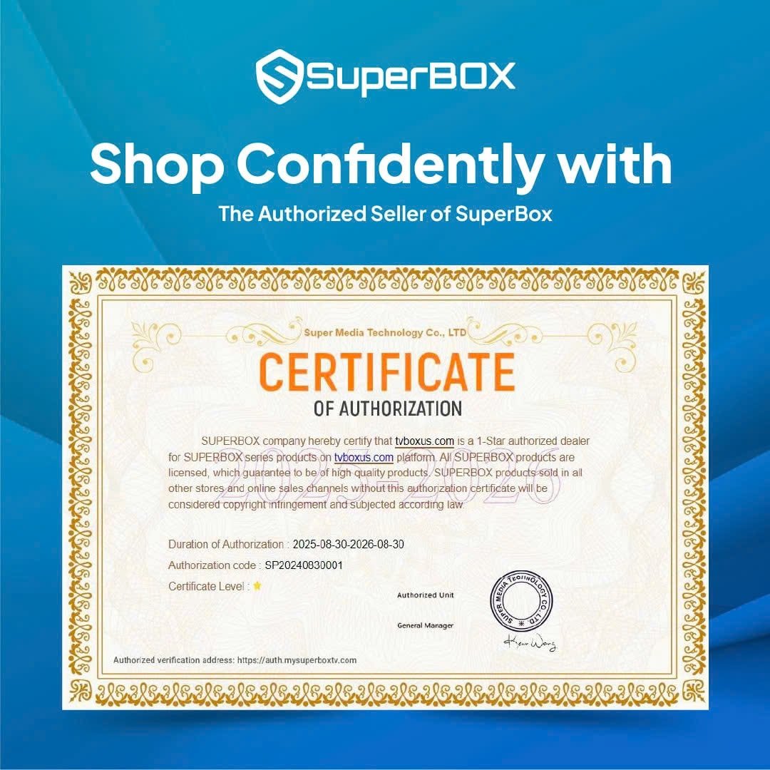 We are an officially authorized seller of SuperBox devices and are committed to resolving any technical issues that arise, including providing remote support, replacement services, and honoring warranties.